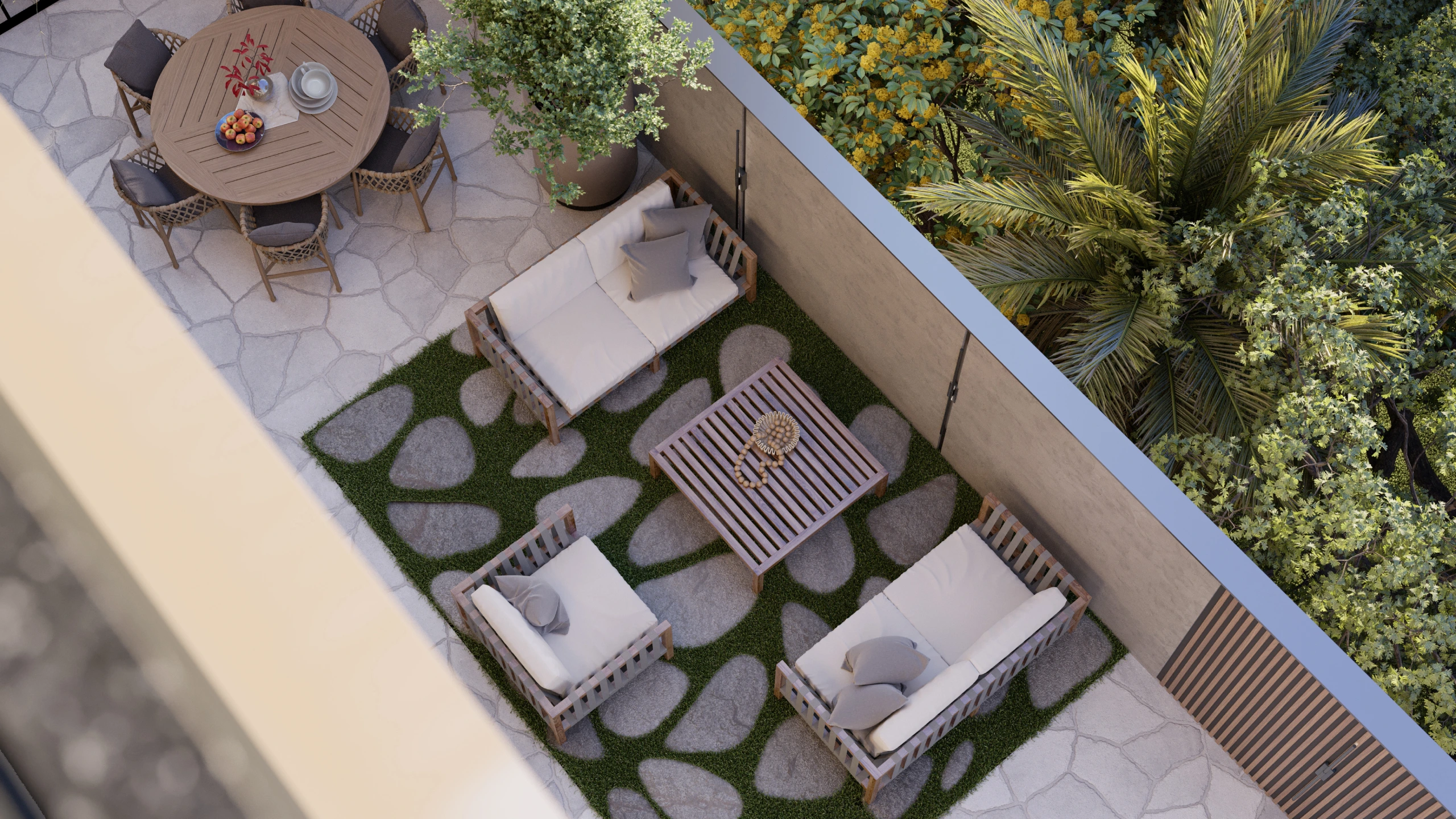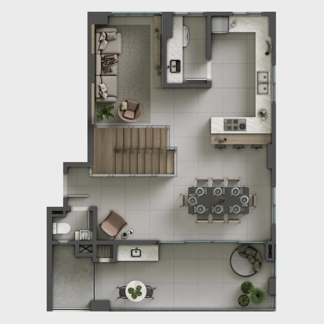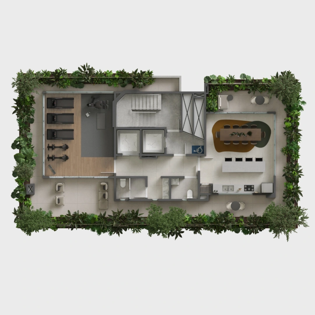 Projetada para proporcionar momentos de descanso e interação em um ambiente que harmoniza elegância e natureza.